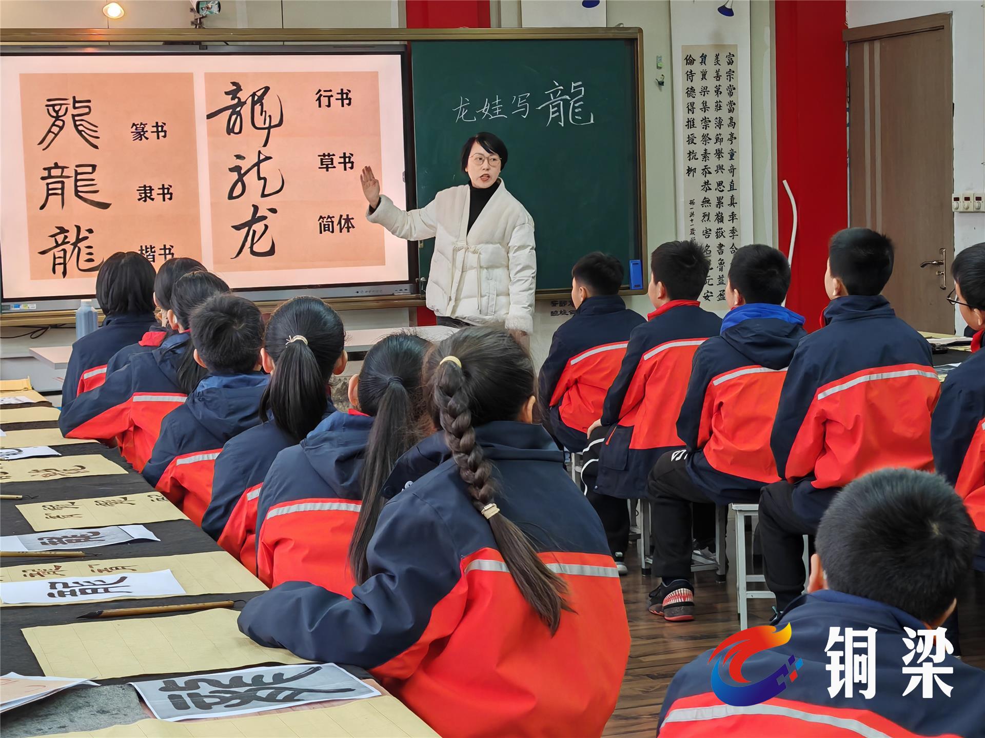 “同学们,你们知道什么是‘二月二,龙抬头’吗?”今年3月11日是农历二月初二,铜梁区实验一小在书法教室开展了一堂别开生面的“龙娃写龙”书法活动,弘扬民俗文化,寄托美好愿望。