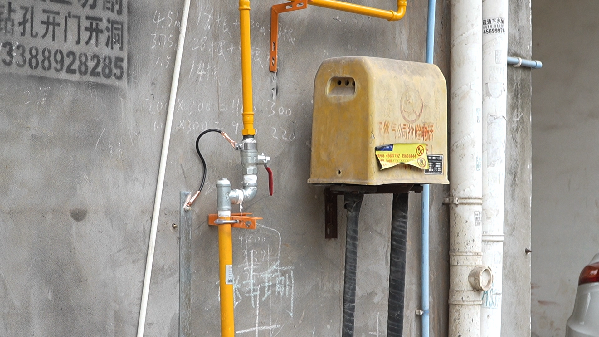 3月28日,铜梁区土桥镇土桥路居民小区的外墙上,专业施工人员正在对老旧燃气管道进行更新安装,并为居民家里加装燃气安全装置。据了解,该小区内的燃气管道使用年限较长,存在材质老化、锈蚀等问题,易导致燃气泄漏等安全隐患。