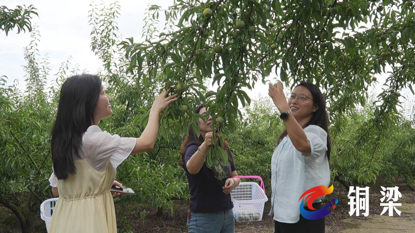 走进铜梁区高楼镇涪江村蜂糖李种植基地,漫山的李树枝繁叶茂,沉甸甸的李子挂满枝头,显得格外诱人,令人垂涎欲滴。郁郁葱葱的果林里,慕名而来的游客三三两两穿梭在基地里拍照打卡、品尝李子,尽情享受采摘乐趣。