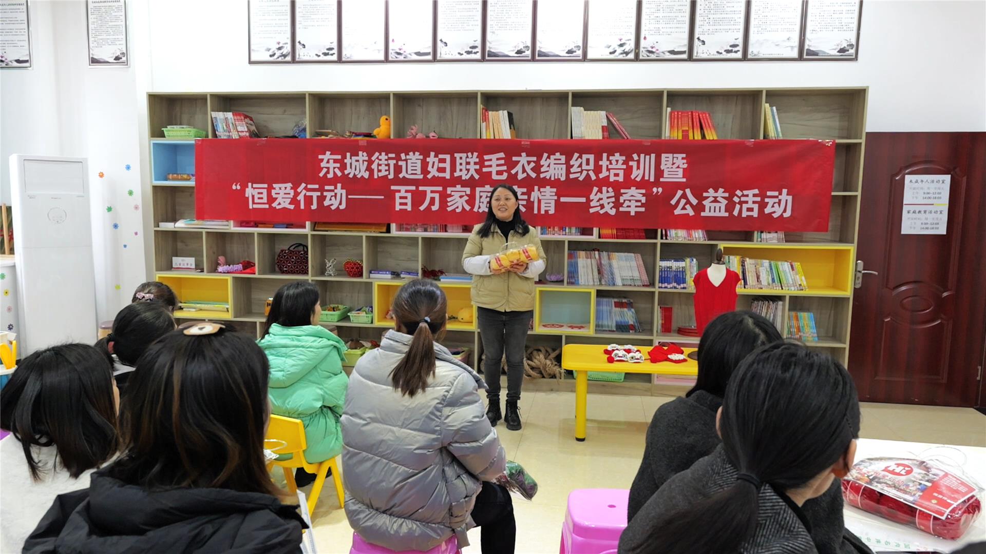 12月2日下午,铜梁区东城街道妇联组织东城街道“爱心妈妈”、干部职工、“爱心家庭”等,开展毛衣编织培训暨“恒爱行动——百万家庭亲情一线牵”公益活动,将关爱传递给困境儿童和留守儿童,让他们感受到冬日里社会大家庭的温暖。