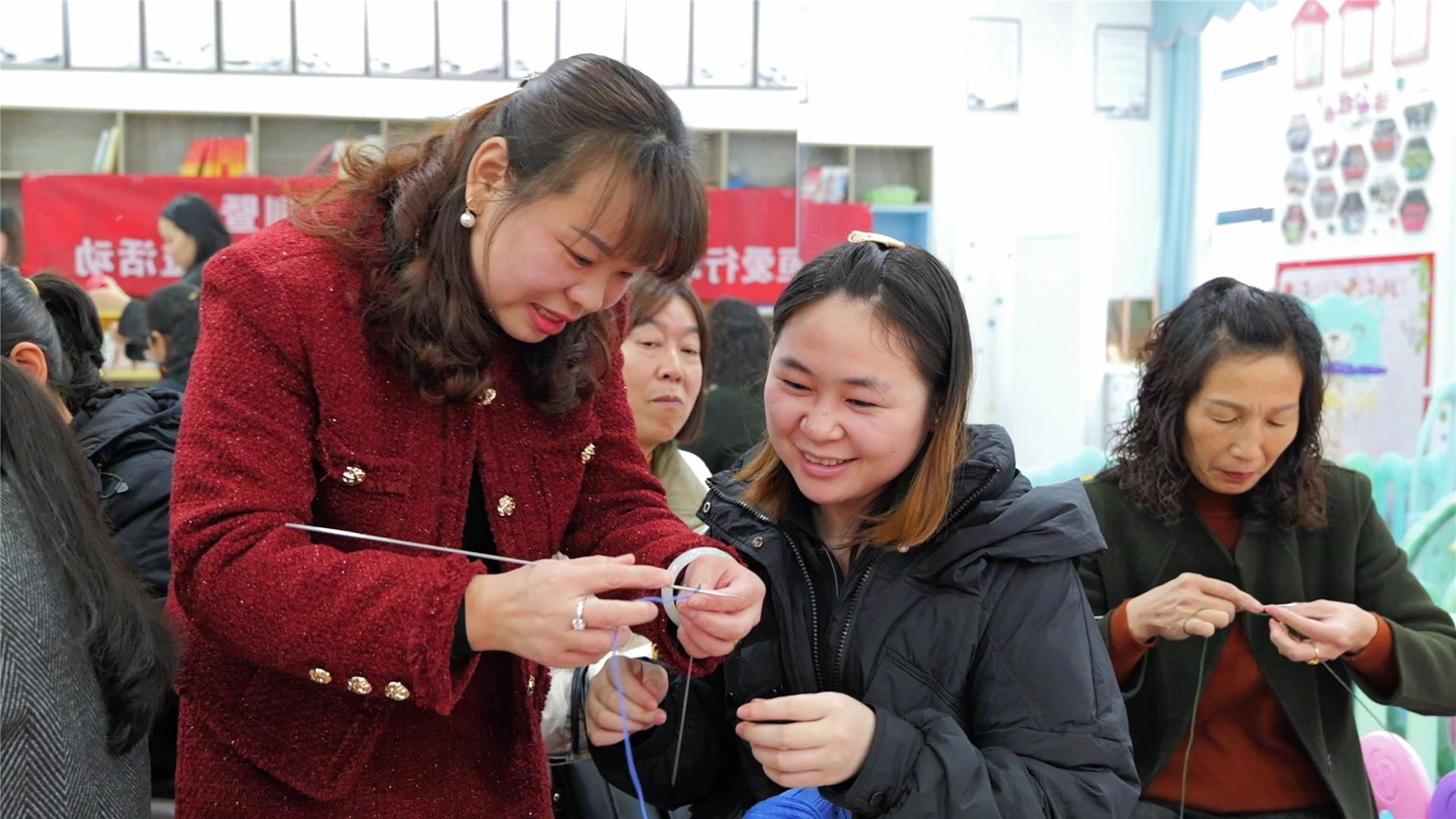 活动中,在东城街道长坡社区妇女儿童之家,编织老师林丽详细讲解了编织的基本针法、图案设计及尺寸把握等知识。在随后的手工编织实操培训中,志愿者在老师的指导下,手持毛线和编织针,一针一线地用心编织。现场弥漫着浓浓的爱意与温情。