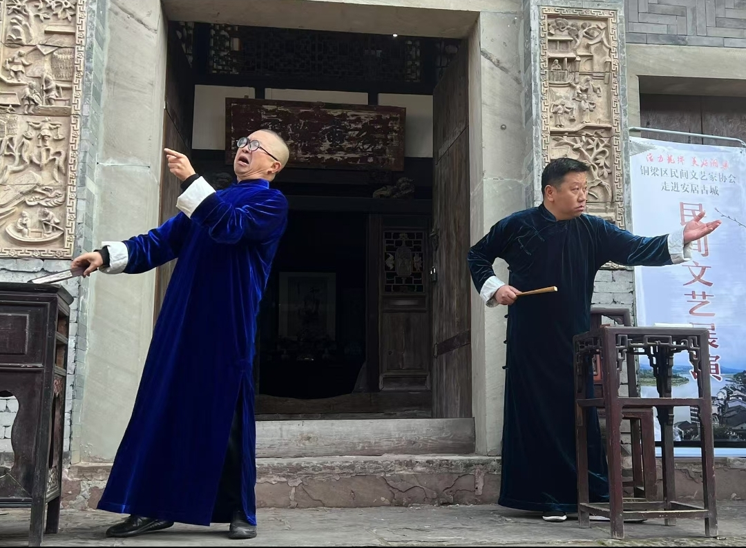 2024年12月31日上午,在铜梁安居古城民间文化展演活动现场,琵琶、古筝、钢琴演奏、四川评书等表演精彩纷呈,吸引了众多观众驻足。