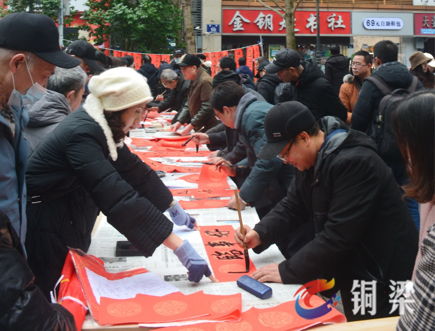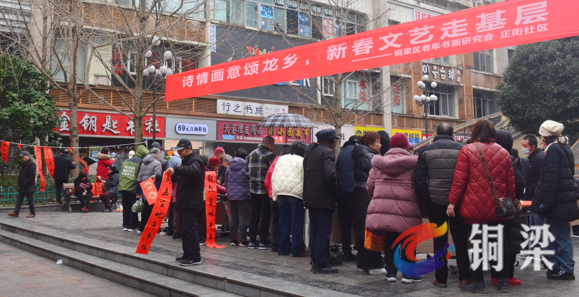 1月13日,铜梁区老年书画研究会的15位书画家来到巴川街道正街社区少云广场,开展“诗情画意颂龙乡 新春文艺走基层”活动,为群众送上新春祝福。