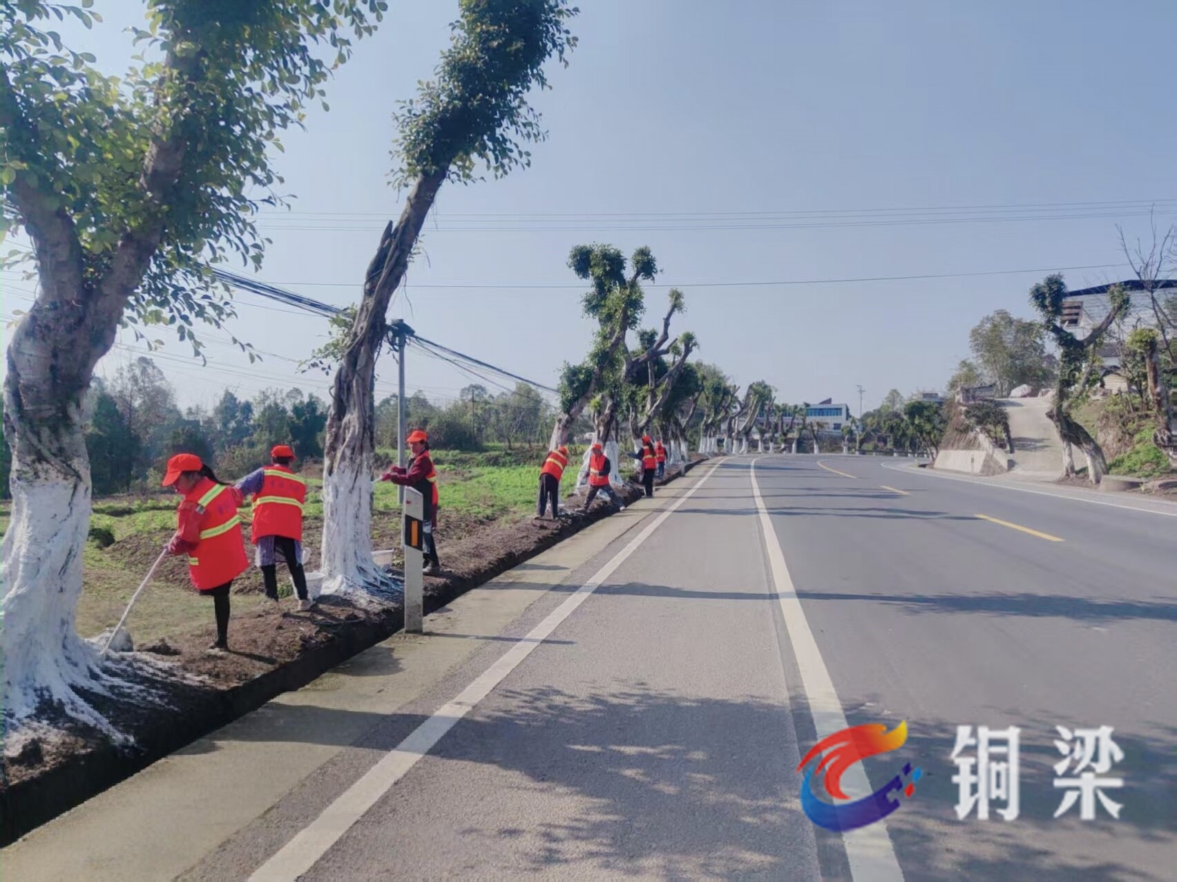3月18日上午,铜梁区公路事务中心组织干线公路养护人员,到G319线铜梁城区至安居镇路段沿线,开展行道树刷白行动。