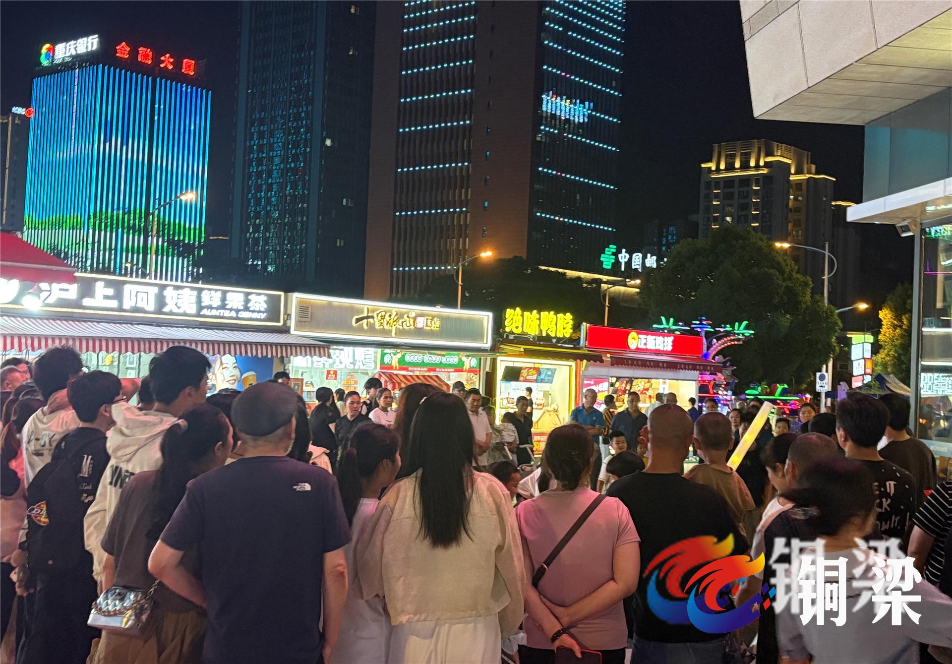 5月4日晚,铜梁龙城天街商圈人头攒动。随着“五一”假期“余额”逐渐归零,全区消费市场又迎来一波热潮。