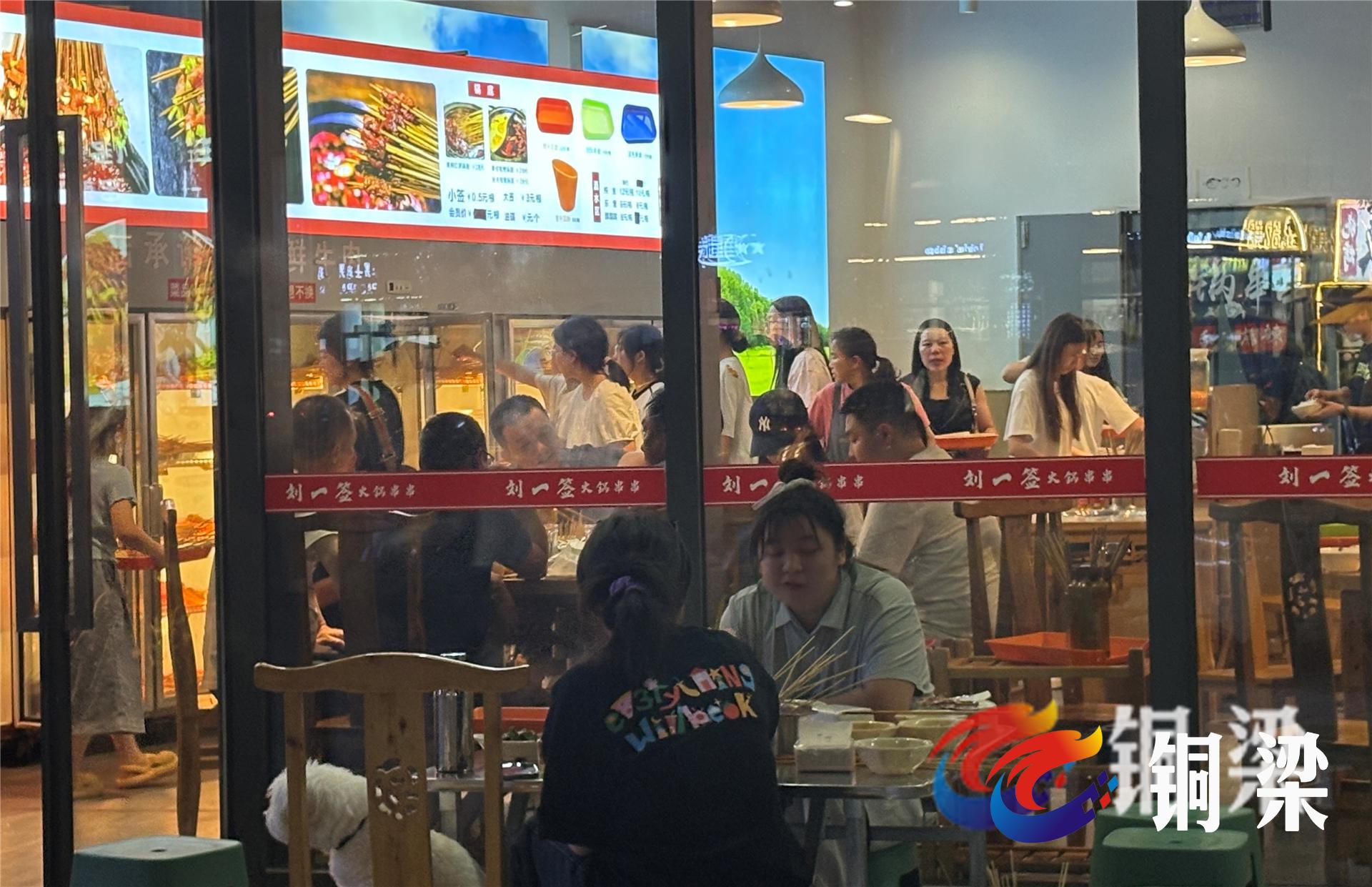 晚上7点左右,在龙城天街商圈附近一火锅串串店外,等待餐位的市民还有很多。“今天我和几个高中同学来这里聚餐,没想到人这么多,我们等了40分钟才有餐位。”重庆某大学大三学生刘颜希告诉记者。
