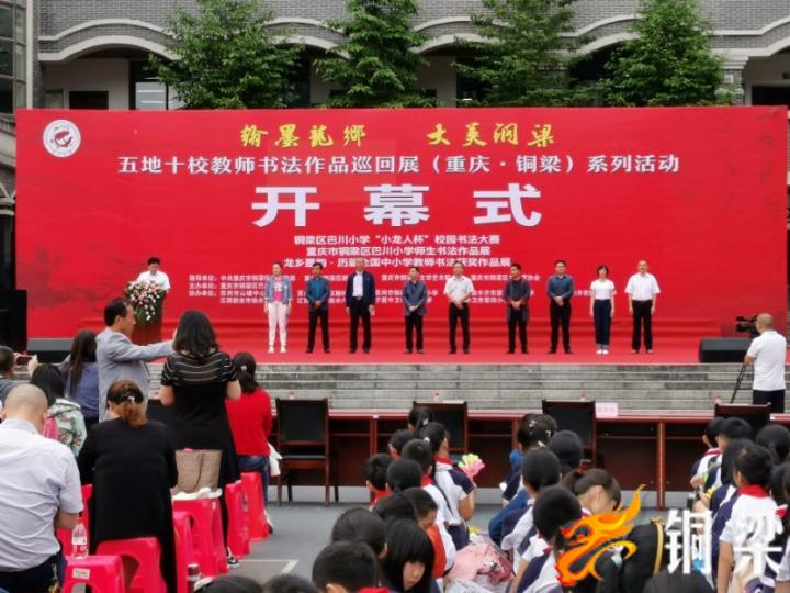 本次巡回展是五地十校教师书法作品巡回展第四站,以“翰墨龙乡·大美铜梁”为主题,由铜梁区巴川小学主办,来自江苏、江西、宁夏和新疆等地的九所小学协办。五地十所书法联谊学校的教师代表们观看了展览后,还将于29日下午和30日上午,到巴岳文津和安居古城书画创作室参观交流,感受“翰墨龙乡·大美铜梁”的魅力。