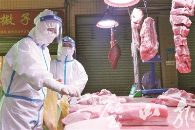 璧城卫生院检验科工作人员在农贸市场采集样本