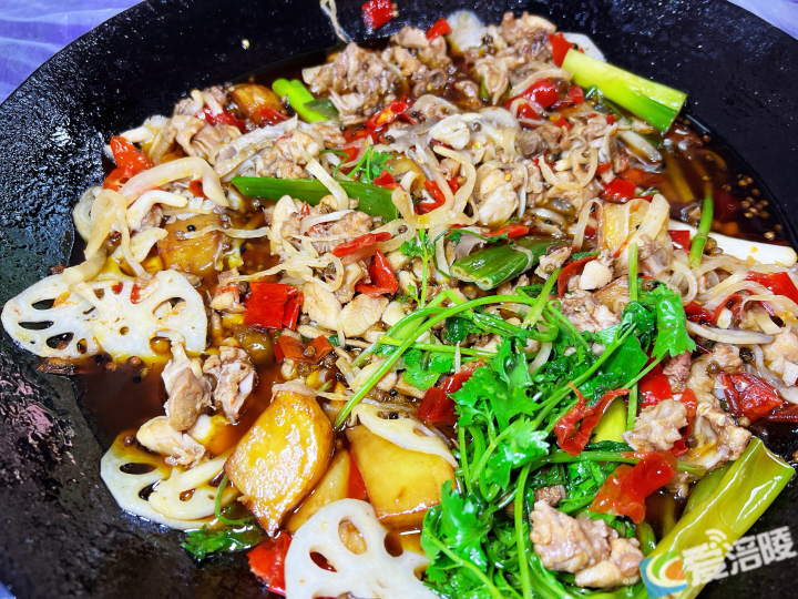 高温过油的兔肉不腥、不柴,用泡姜、泡海椒、泡萝卜炒制,配上洋芋、藕片、平菇,酸辣可口!