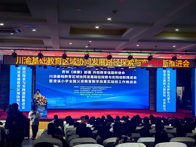 11月26日,川渝基础教育区域协同发展路径探索与实践创新推进会在澄溪小学召开,川渝两地共300余名教育工作者参加。