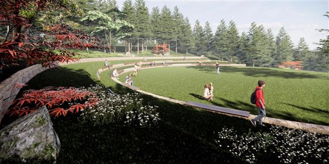 在功能设计上,项目融入多元巧思,集装箱创意商业区将集装箱改造为商店和餐饮设施,环保又时尚;荒野剧场充分利用自然地形打造户外演艺空间,可举办音乐会、篝火晚会等活动,丰富夜间休闲场景;儿童活动场地配备秋千、跷跷板、独木桥、轮胎桥等无动力游乐设施,可满足亲子家庭需求;果园采摘体验区则依托金桂果园种植的梨、晚脆李、柿子等水果,推出四季采摘活动,让游客沉浸式体验农耕乐趣。