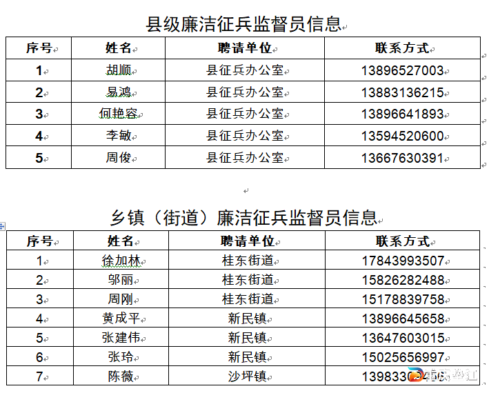 现将垫江县2026年廉洁征兵监督员及监督举报电话予以公示,任何群众一经发现涉征兵违法违纪线索或廉洁征兵问题可拨打监督举报电话。