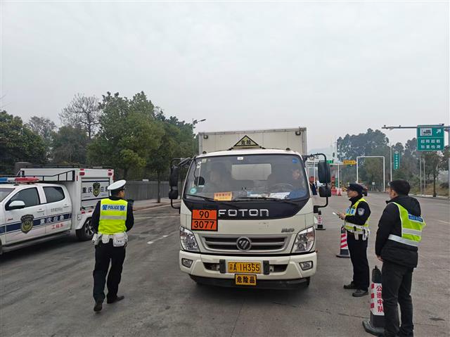 不仅如此,执法人员还在我县各重点路段、区域科学布控,设立4个流动执法检查点,对过往的危险品运输车辆实行“逢疑必查”,严格核查车辆道路运输证、驾驶员及押运员从业资格证、电子运单等手续是否齐全有效。