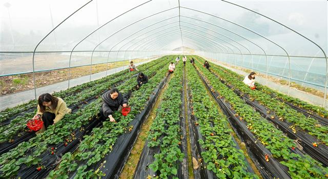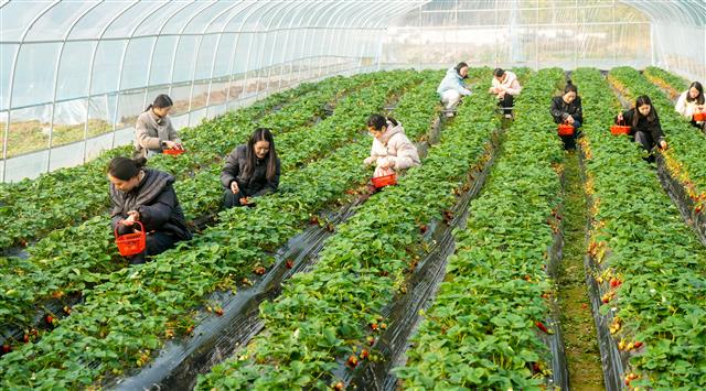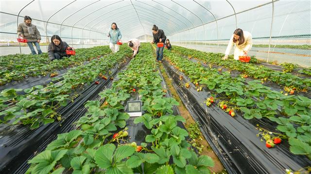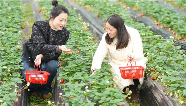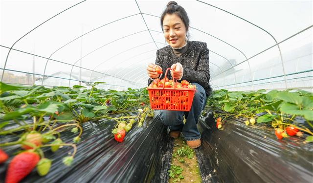 12月11日,桂溪街道肖家湾社区草莓园,成熟的草莓十分喜人,市民在草莓园体验采摘的乐趣。据了解,该草莓园今年引进社区,共16个大棚,现正值草莓大量上市,供应时间可持续到明年5月份。