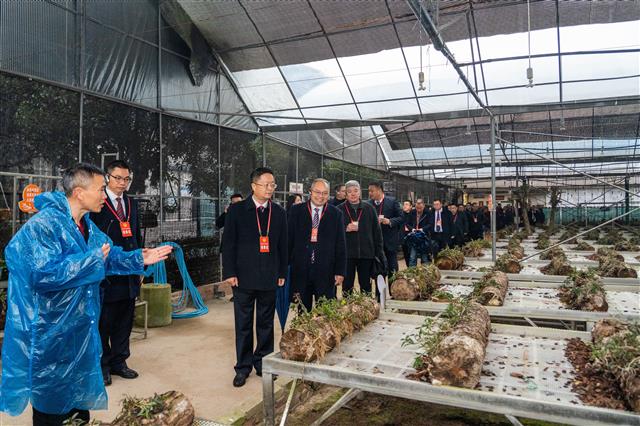 (委员们视察中华仙草园健康产业园。记者 魏瑞 摄)