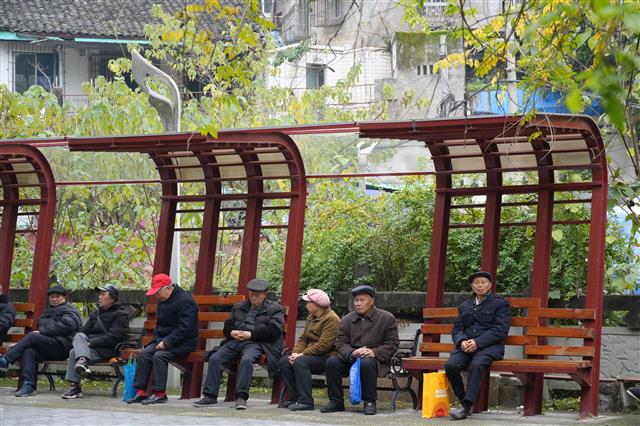 (老人们在长者乐园长廊内休息、聊天。资料图片)