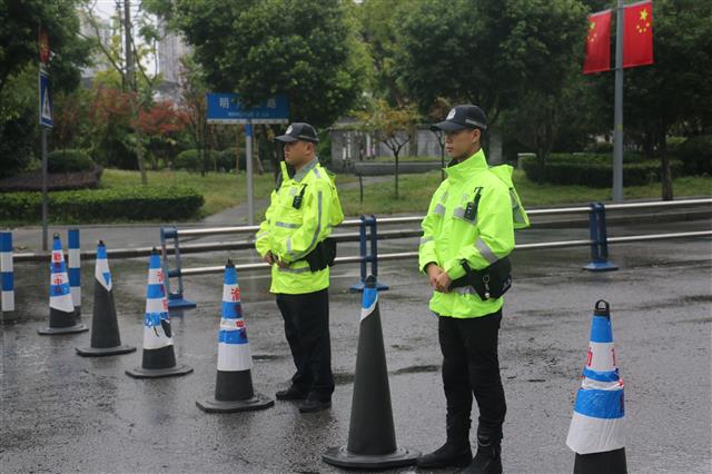 (民警现场执勤维护交通。记者 王喜 摄)