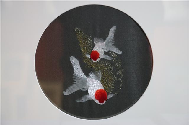 (陈静的垫江刺绣作品。记者 何明燕 摄)