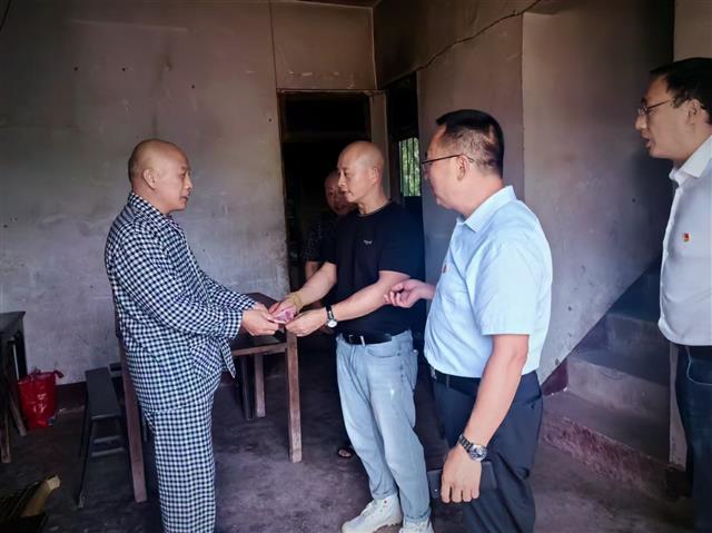 (殷正双关爱困难群众。由受访者提供)