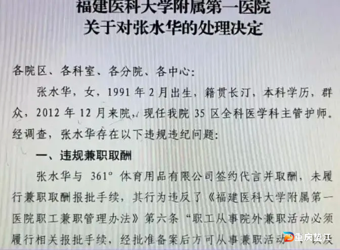 《福建医科大学附属第一医院关于对张水华的处理决定》部分截图。图源新重庆-重庆日报