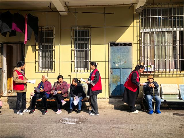 (工作人员对社区居民进行宣传。记者 陈舒琪 摄)
