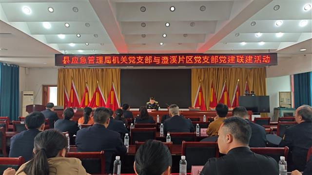 (县应急管理局机关党支部与澄溪片区党支部开展联建活动。受访单位供图)