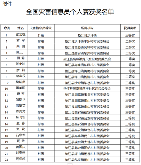 (垫江参加2025年全国灾害信息员技能大赛获奖名单。)