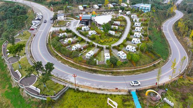 寒意初袭,闲云茗居房车露营基地却美得不输春夏。11 月 13 日,这里云淡风轻、景致如画,游客们沉醉于自然美景中,观景、玩耍,定格初冬露营的美好瞬间。