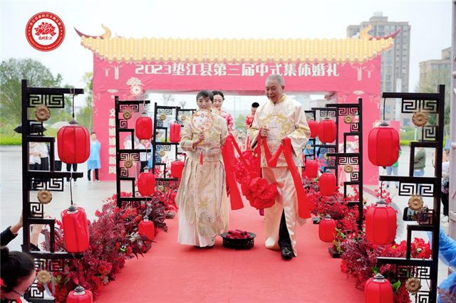 五年来,我县每年都会举行庄重又浪漫的“牡丹之恋·白首之约”集体婚礼。新人们身着传统婚服,行沃盥、同牢、结发之礼。垫江豆花、牡丹糕等本地风物巧妙融入仪式中,非遗与婚俗交相辉映,让庄重典雅的传统仪式承载起新时代的婚姻价值观。