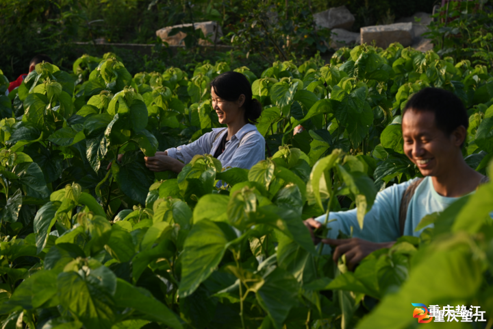 (2025年5月20日,垫江县五洞镇文龙村,赵志和妻子正在采摘桑叶。)