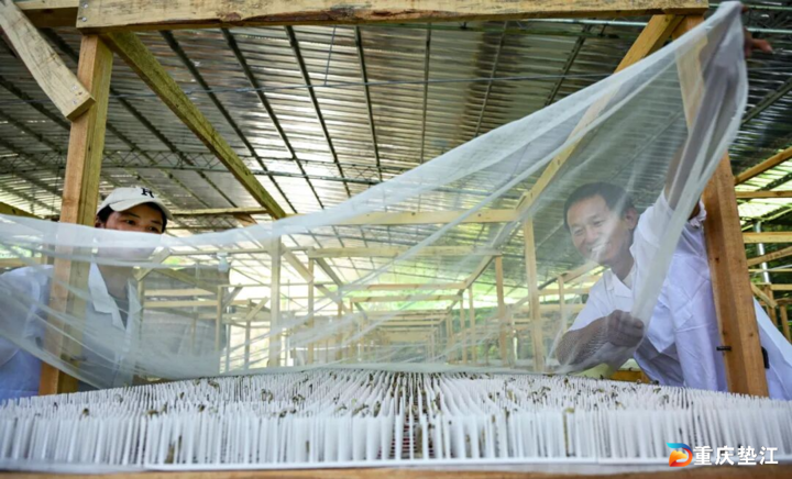 (2025年5月31日,垫江县五洞镇文龙村,赵志正在收蚁。)