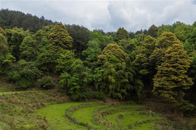 桂花湾,曾是我县水土流失的典型区域。每逢雨季,水土流失严重,导致土地贫瘠、农田退化、农田收成减产、生态环境脆弱等问题。而今通过坡改梯、修建蓄水排水设施、植树造林等系统性综合治理措施,山川得以换新颜,水土焕发新生。