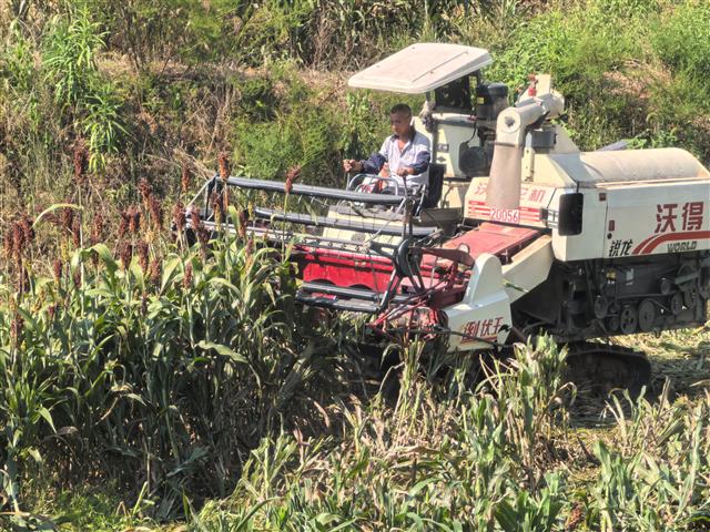 近日,记者从长龙镇获悉,该镇今年共种植高粱1000亩,主要品种为冀粮4号,亩产500斤左右,产量达4万斤,实现产值12万元。(收割机正在进行作业。资料图) 今年以来,为推动高粱产业的持续健康发展,长龙镇组建专业的