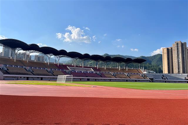 弹性良好、抗压有型、线条清晰、环保安全、美观实用……10月15日,步入县体育场,记者看到改造完工并恢复对外开放的运动跑道焕然一新,全新的塑胶跑道如一条绚丽的橘红色彩带,与绿茵场地交相辉映,不少运动爱好者和