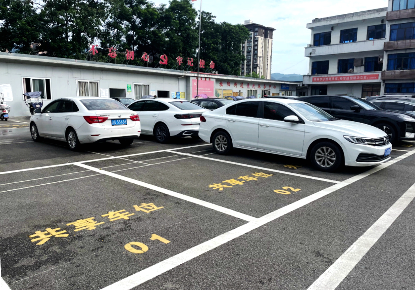 10月17日,记者从县住房城乡建委(县城市管理局)获悉,我县已在26个乡镇(街道)机关、企事业单位内部停车场推行“错时共享”停车位1711个,缓解居民停车难题、提升公共服务水平。(桂阳街道办事处共享停车位。记者