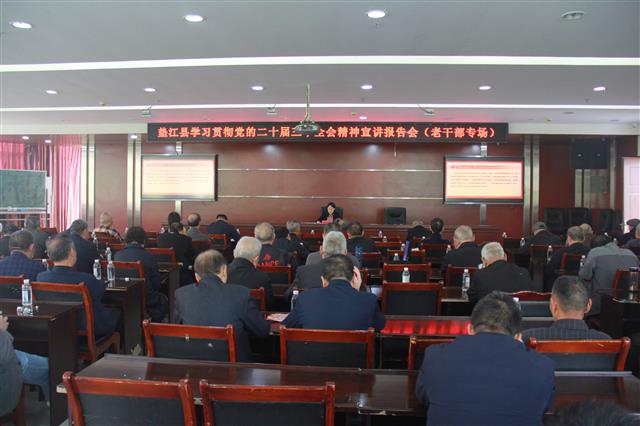 10月23日,垫江县学习贯彻党的二十届三中全会精神宣讲报告会(老干部专场)举行。县委宣讲团成员、县委宣传部常务副部长张丽平为全县老干部作宣讲报告。(宣讲报告会现场。记者 王俊杰 摄)张丽平在报告中紧紧围绕习