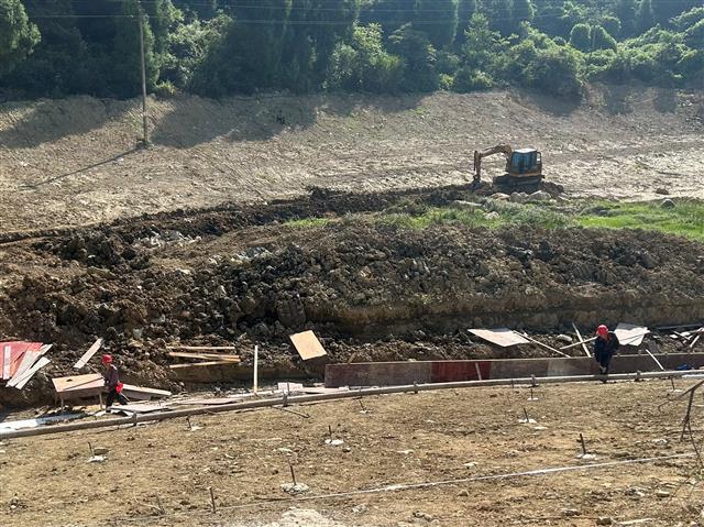 近日,记者在三溪镇稻乡产业路施工现场看到,工人们正忙着轧钢筋、混水泥、铺管道。不远处,挖掘机正开足马力在进行道路建设,整条道路已初见雏形。(施工现场图。记者 何明燕 摄)施工方负责人方元鹏介绍,项目从去