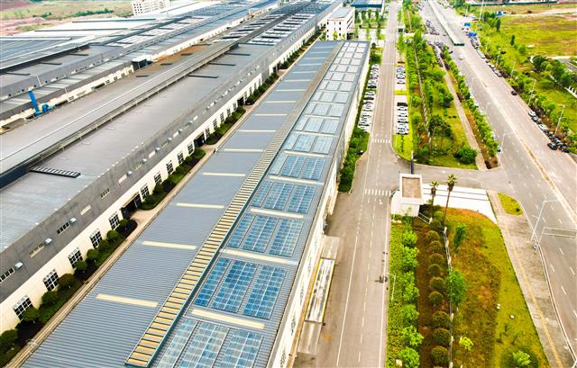 近日,记者在重庆捷力轮毂制造有限公司看到,厂房屋顶安装的光伏发电装置正源源不断地向企业输送着电力。(光伏发电装置。记者 龚长浩 摄)重庆捷力轮毂制造有限公司生产管理中心主任唐德波介绍,该公司与国网重庆综