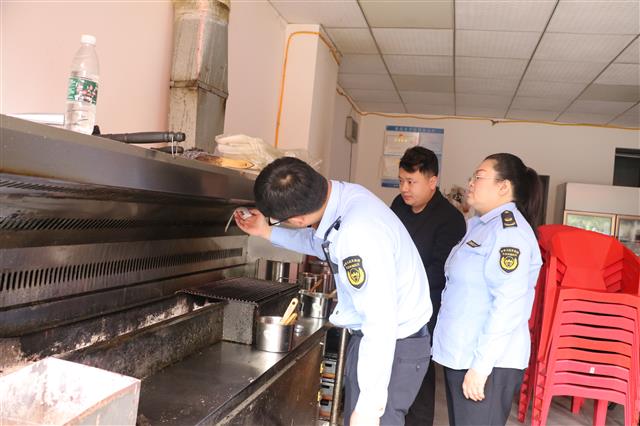 连日来,县生态环境局积极开展了县城区餐饮单位油烟治理专项执法行动,督促指导县城区餐饮单位油烟达标排放,减少油烟扰民,改善我县空气环境质量。时间将持续至7月31日。执法人员正在对餐饮单位进行检查。记者 周迎