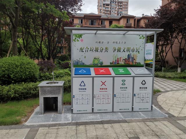 “阿姨,大棒骨难腐蚀,不是厨余垃圾而是‘其它垃圾’,类似的还有玉米核、坚果壳、果核……”走进中央华府小区,桶边指导员正履职尽责为小区居民做垃圾分类指导,小区内部垃圾分类宣传语随处可见,分类垃圾桶成组摆