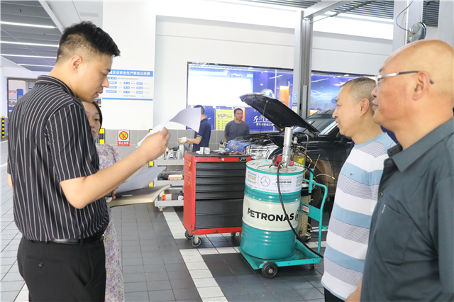 5月27日,县交通运输委开展维修行业危险废物处置专项检查。工作人员检查汽修企业危废产生源台账。记者 周迎迎 摄行动中,县交通运输委通过现场勘查、调查询问、查看资料等方式,仔细核查汽修企业油水分离池建设、危