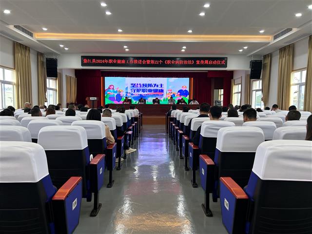 4月22日,我县2024年职业健康工作推进会暨第22个《职业病防治法》宣传周启动仪式在重庆博杰能源有限公司召开。启动仪式现场。记者 革奇摄启动仪式上,相关部门报告了2023年我县职业健康工作,安排了2024年主要工作,