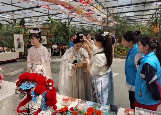 近日,垫江职教中心在“牡丹花开 香约垫江”活动中,精心组织了别开生面的非遗展示体验活动,将非遗角雕、竹编、绒花和牡丹文创等传统文化元素带到牡丹樱花世界,让游客们在游览牡丹花的同时,也能领略到非遗文化的