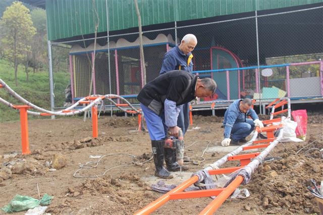 3月19日,记者从恺之峰旅游区了解到,景区新建的亲子游乐园将于29日投用,覆盖22个项目游玩项目。工人正在安装游乐设施。 记者 王俊杰 摄据悉,恺之峰旅游区亲子游乐园为重庆兴垫文化旅游开发有限公司投资建设,累计