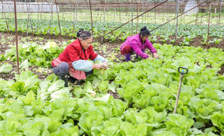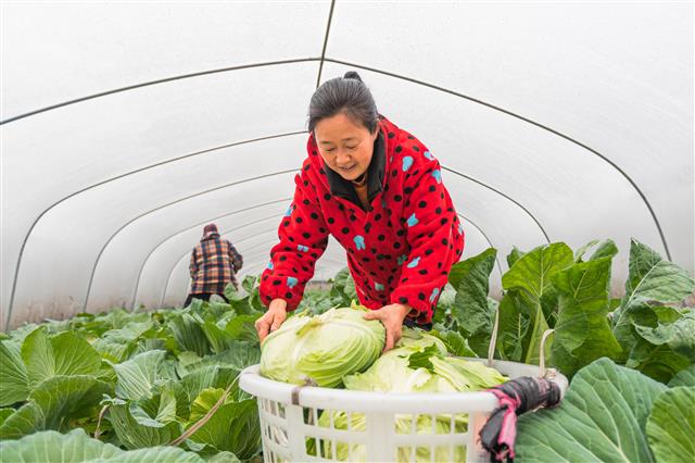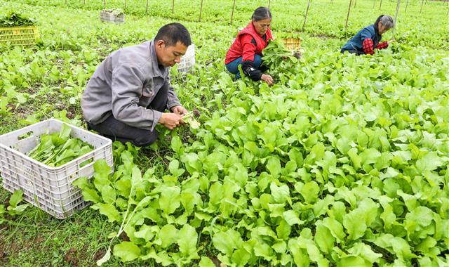 (工人在装蔬菜。)(工人在采收蔬菜。)(工人在收蔬菜。)(连片蔬菜。)(连片的大棚蔬菜。)11月1日,新民镇明月村蔬菜基地,连片的蔬菜长势喜人,工人正在地里采收,以及时供应到市场。当前,我县秋冬季20万亩