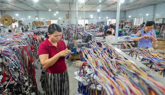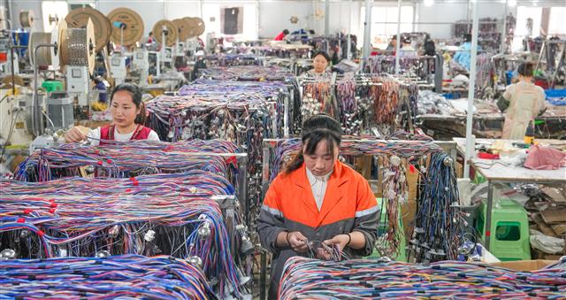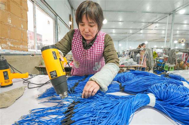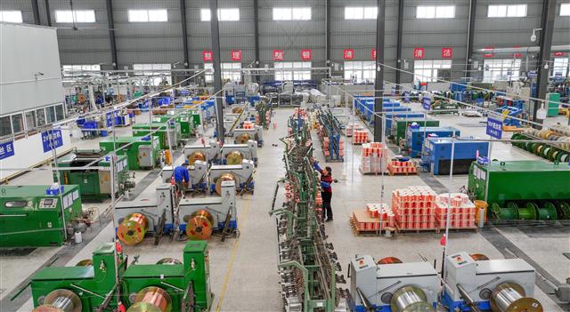 (忙碌的车间。)(车间一角。)(工人在作业。)(工人在车间作业。)(工人正在车间作业。)10月21日,垫江高新区永晟线缆新能源科技有限公司,工人正在赶制一批线缆产品。据了解,该公司前三季度产值1.9亿元,同