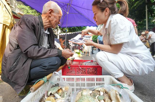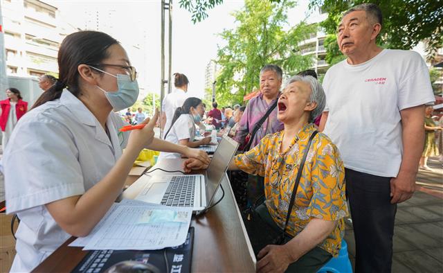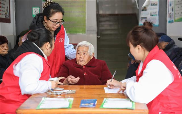 (市民在抽血检查。)(市民在做心电图。)(医护人员引导老人做检查。)(医生把脉问诊。)3月3日,在桂阳社区卫生服务中心,医护人员正在给老人检查身体。据了解,1月份以来,该卫生服务中心针对辖区65岁以上的老