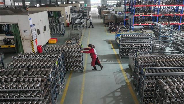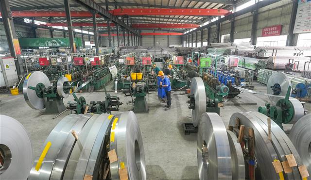 (工人在转运生产材料。)(工人在车间作业。)(工人查看原材料。)(生产车间一角。)(工人赶制产品。)9月11日,在垫江高新区重庆鑫华汇实业有限公司车间,工人正在生产线上赶制产品。重庆鑫华汇实业有限公司是