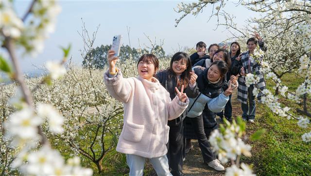 3月2日,五洞镇李花园万亩李花次第绽放,游客在花海里赏花拍照,十分惬意。近年来,五洞镇以万亩李花为核心做足“花经济”文章,打造李花园景区,形成春赏花、夏摘果的农文旅融合发展新业态,有效带动周边一批农家乐