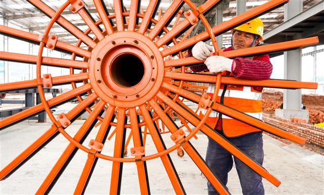 工人焊接材料。工人在赶工。工人在加工厂调运材料。工人在加工厂调运材料。工人在加工厂焊接材料。工人在加工厂焊接材料。1月4日,垫丰武高速项目新民镇钢筋加工厂内,焊花飞溅、机器轰鸣。工人们正紧锣密鼓地赶制高